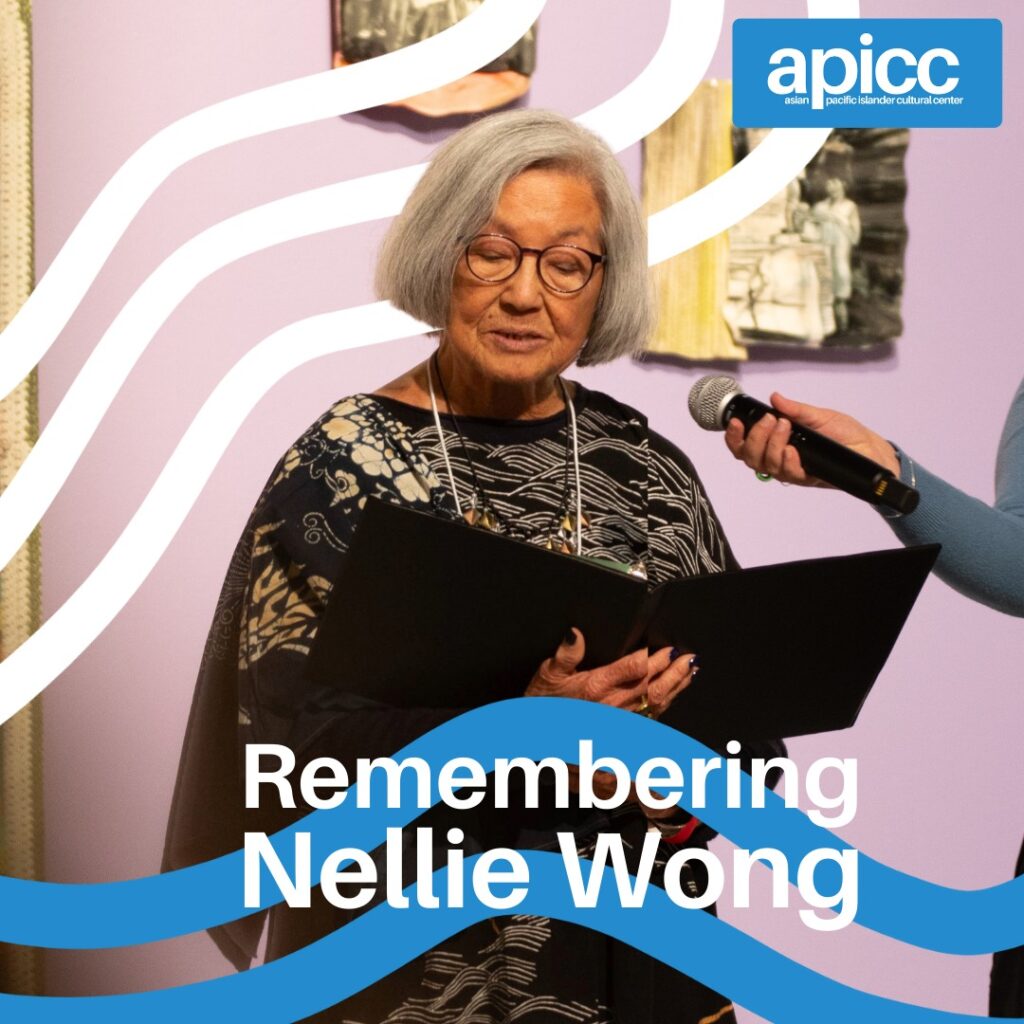 We want to extend our condolences to the friends and family of Nellie Wong. Nellie was such an important and beloved voice as an artist, activist, and advocate for our community. We were fortunate to have been able to feature her at KSW over the last couple of years at the Asian American Lit Fest in 2024 where Nellie delivered the keynote address and with her literary collective, Last Hoisan Poets, in 2023 at the SF Library during our intergenerational panel and performances during our Dreaming People’s History exhibition run. Nellie has had a long history with Kearny Street Workshop and we are so grateful for all the support, love, and care she’s given us throughout the years.